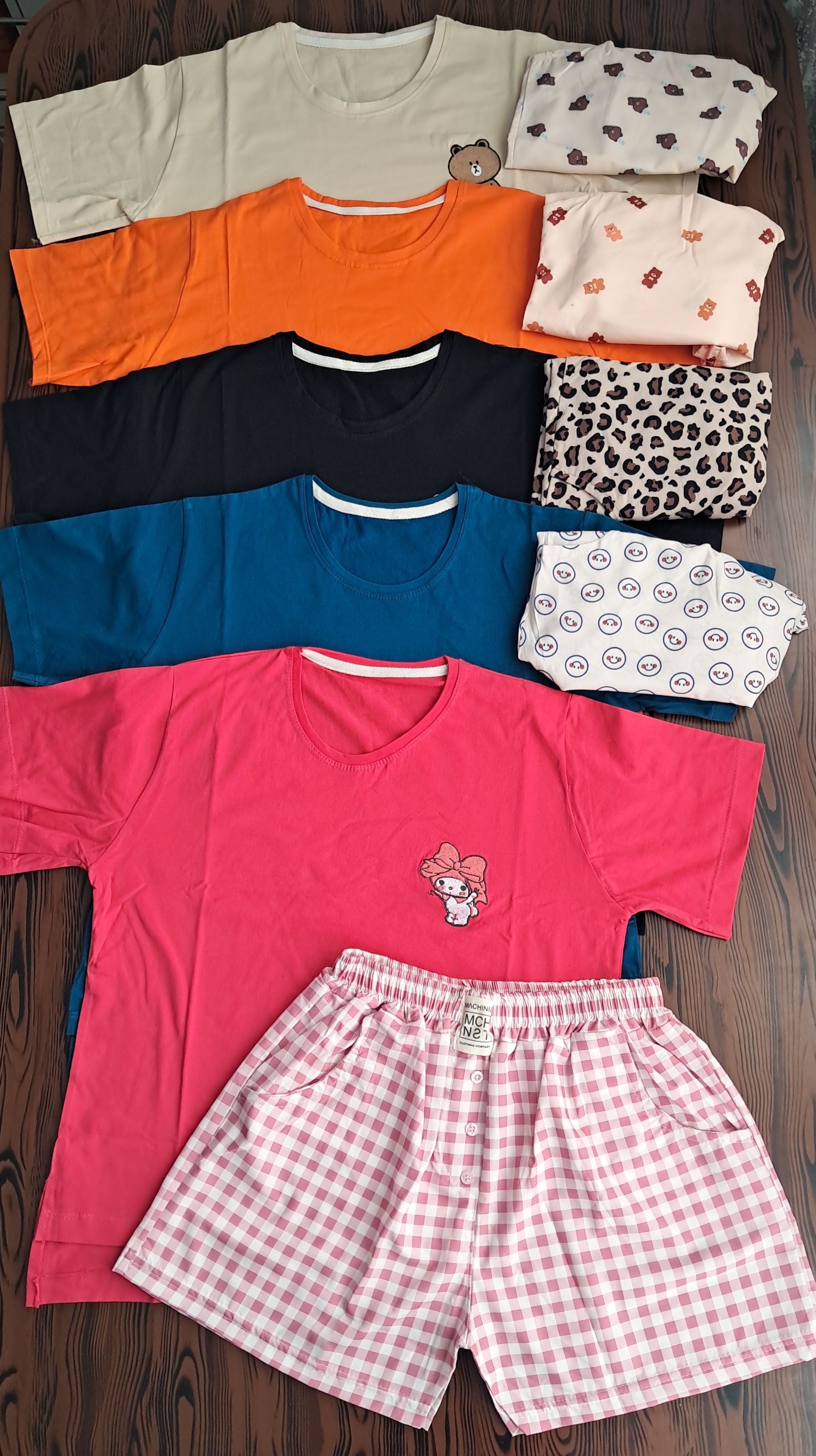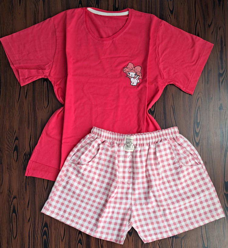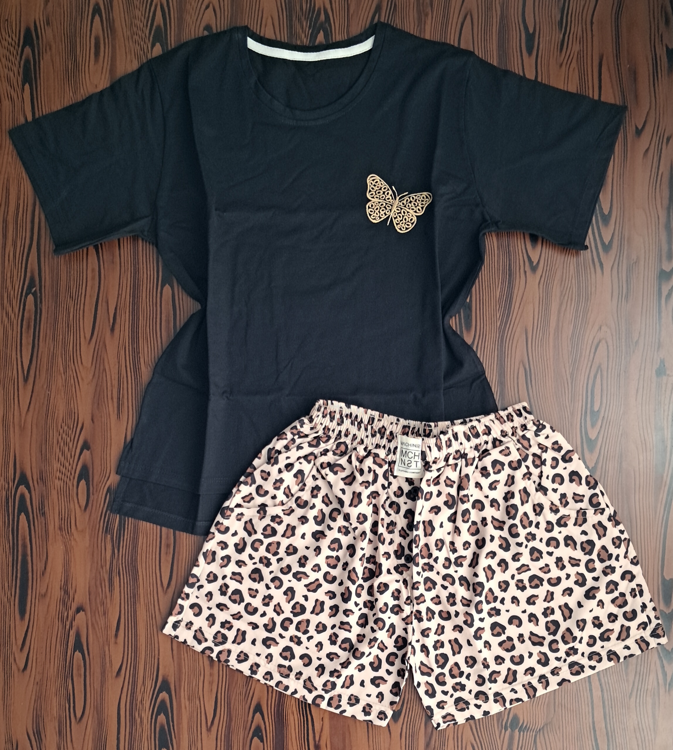 جزئیات: طرح روی تیشرت گلدوزی شده و بغل تیشرت چاک داره ، شورتک جیب داره و دکمه نماس