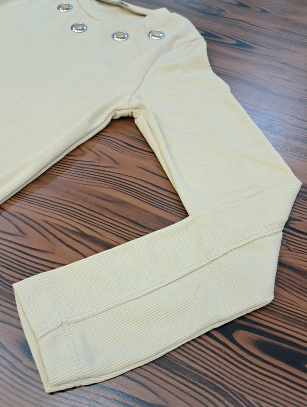 اندازه ها: 🔸️قد کراپ : ۵۵ cm 🔸️دور سینه بدون کشسانی: ۷۶ cm 🔸️قد آستین: ۵۴ cm