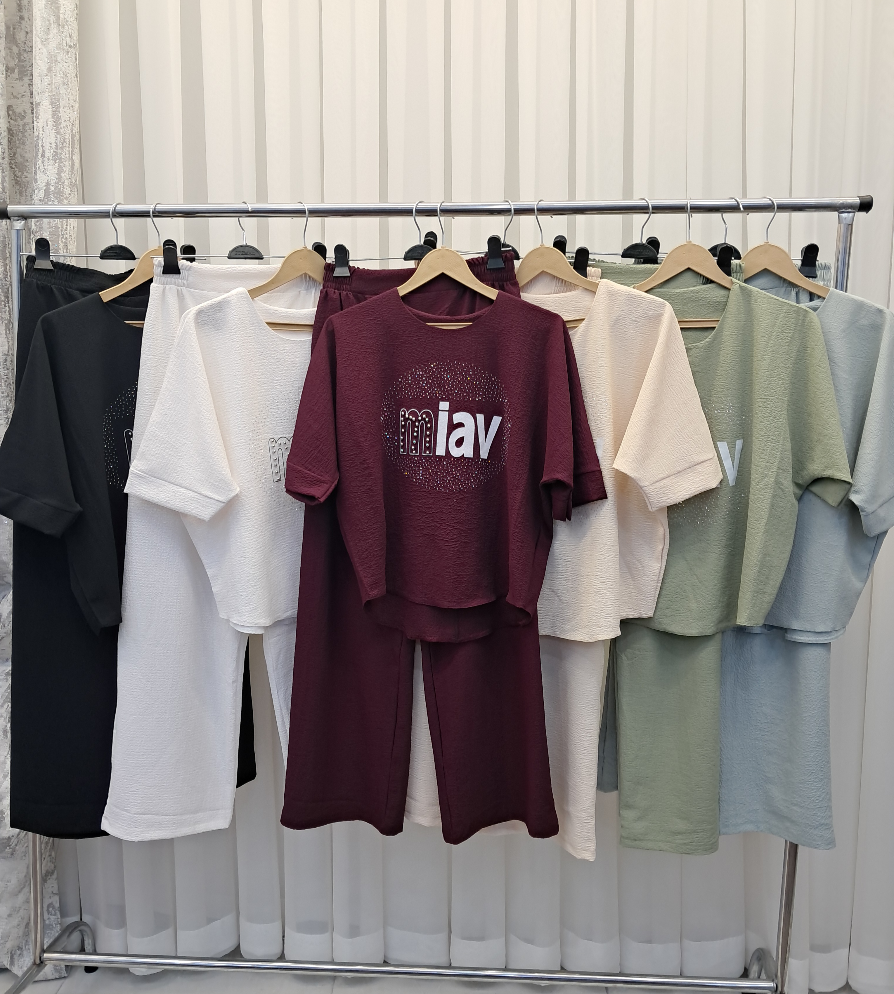 ست دو تیکه کراپ و شلوار نگین ، یه ست راحتی دخترونه و زنونه دلبر