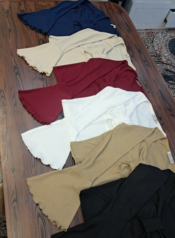 اندازه ها: 🔹️قد کراپ : ۴۴ cm 🔹️قد آستین : ۶۴ cm 🔹️دور سینه بدون کشسانی : ۸۱ cm