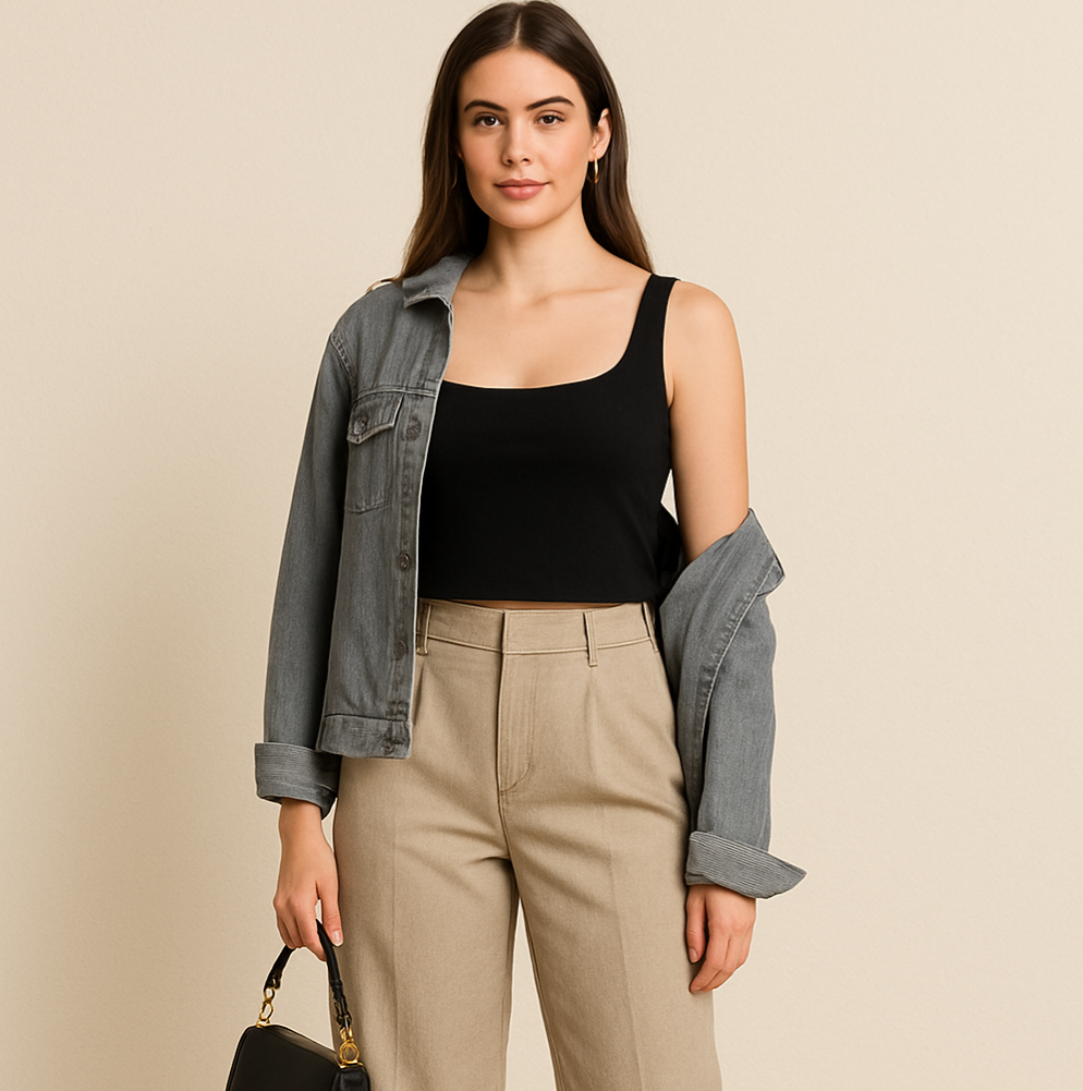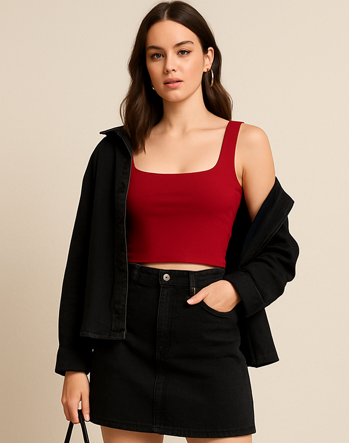 کراپ تاپ کبریتی یقه خشتی ، یه کراپ چهار فصل و با کیفیت مناسب زیر کت ، شومیز و ...